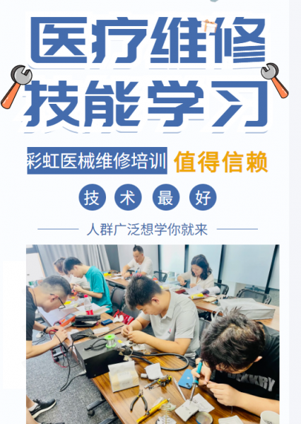 咨询课程人员相对广泛,除了相关业务提升外,人员都是各行各业,我们的课程也是不限制人群,只要想真正学维修技术皆可报名,对于零基础人员让入行医疗器械维修行业也不是问题,彩虹培训课程从基础开始讲解,第一周就是基础电路、专业英语做铺垫,打好基础我们在学各医疗影像设备,根据学员的实际情况,因材施教,设置个性化培训方案,聘请业界专家和有资深工作经验工程师授课、探讨、交流。互动式的培训强调“讲练结合”,保证每位学员有充足机会亲自动手操作、实践。“从换灯泡、维修床到修CT,我们有行业资深工程师手把手教学!学到即赚到!”